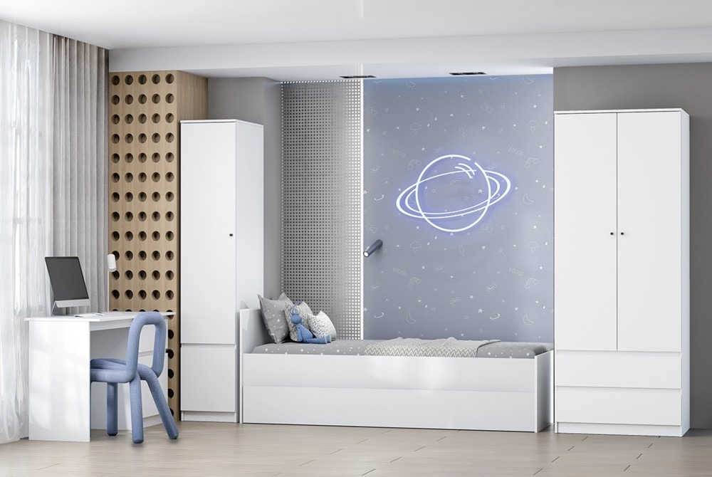 Современная модульная мебель для спальной комнаты. Материал: ЛДСП.