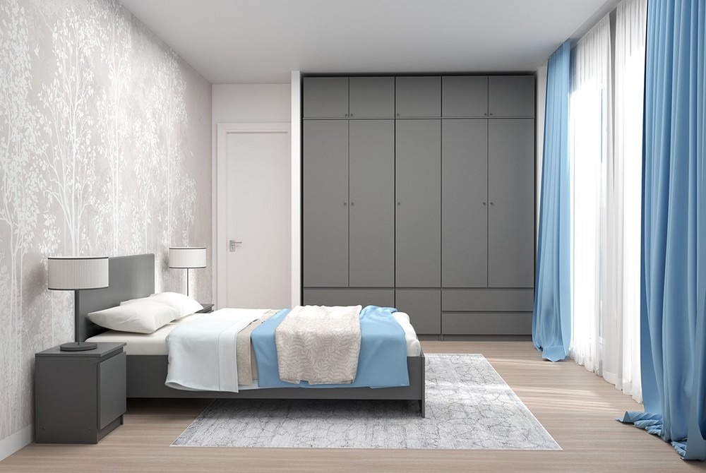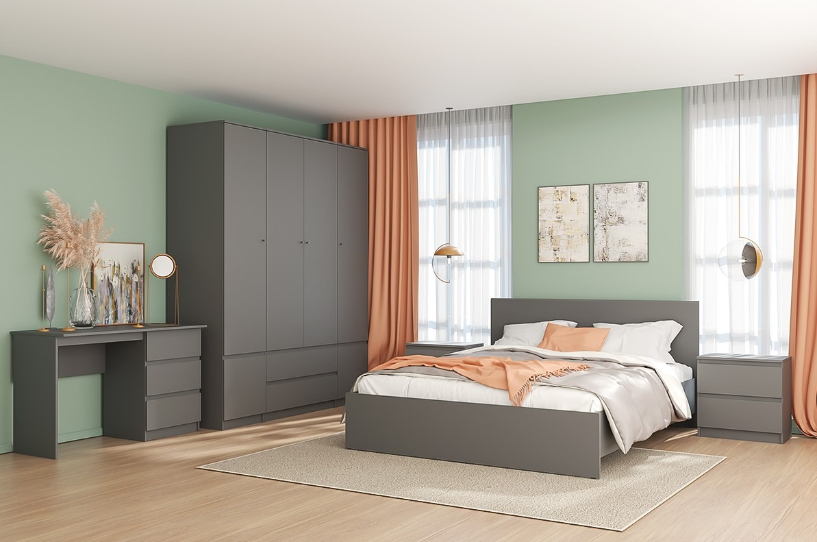 Модульная коллекция корпусной мебели для спальни. Материал: МДФ покрытый плёнкой, ЛДСП.