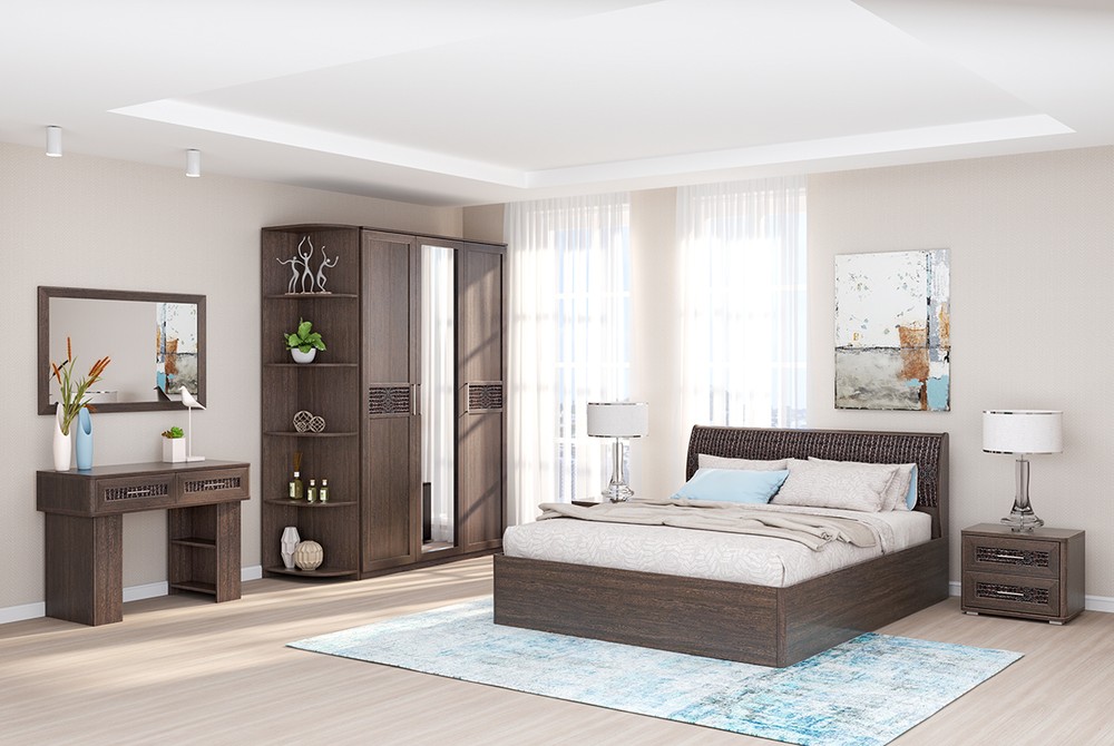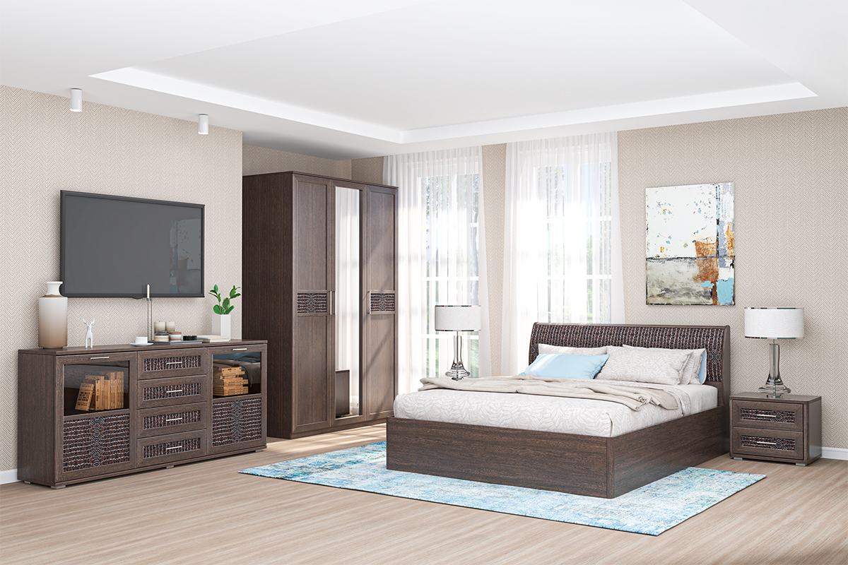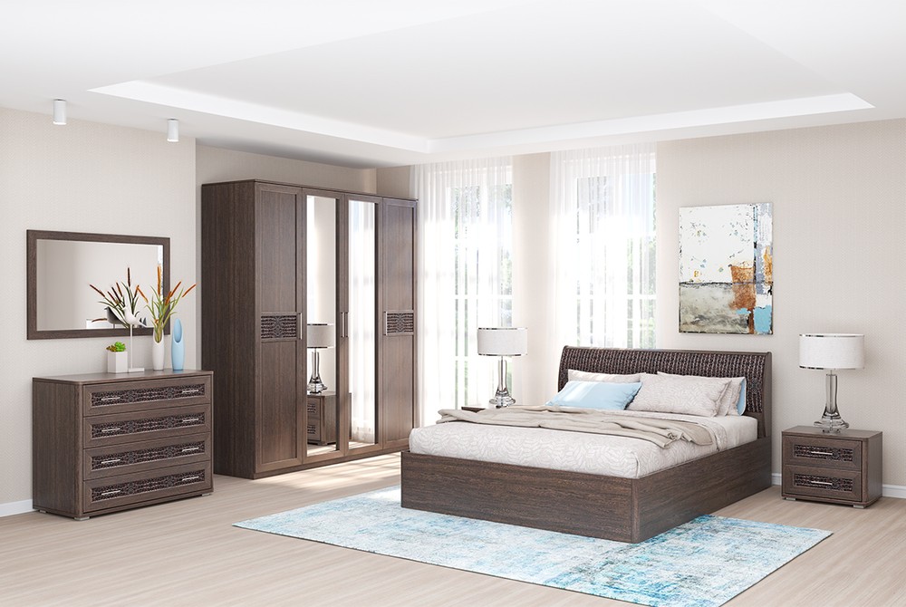 Комплект мебели для спальни в цвете венге. Материал: ЛДСП.