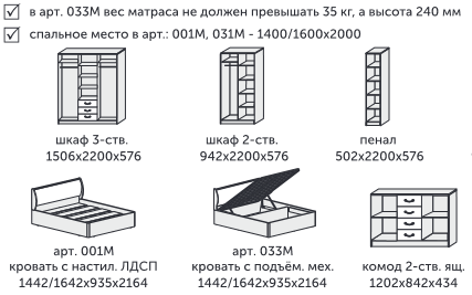 Возможен самовывоз со склада. Стенки/прихожие/шкафы-купе/кухни и детскую мебель можно забрать на легковом авто, сложив задние сидения. Длина упаковок до 2м.