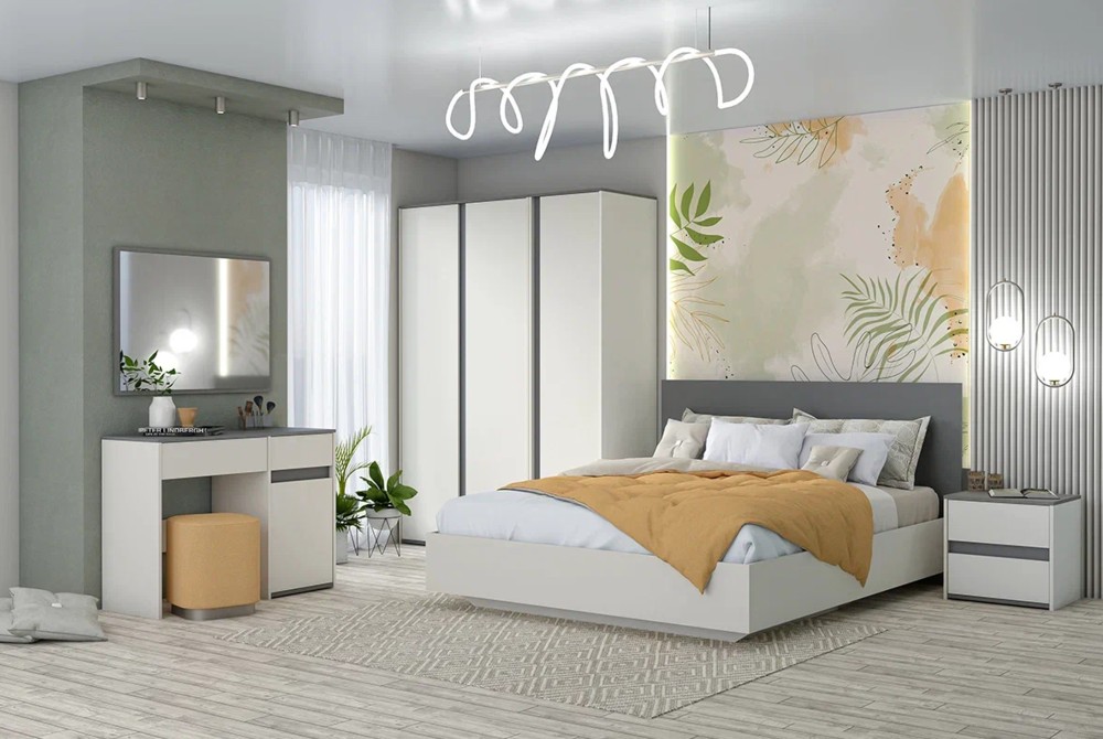 Модульная коллекция мебели для спальной комнаты. Материал: МДФ покрытый плёнкой, ЛДСП.