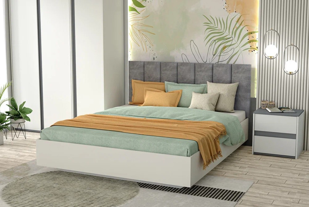 Состав комплекта: комод, шкаф, двуспальная кровать, тумба (2 шт).