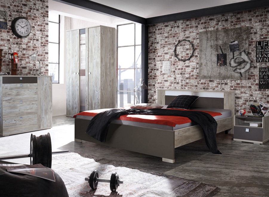 Состав комплекта: комод, шкаф, двуспальная кровать, тумба (2 шт).