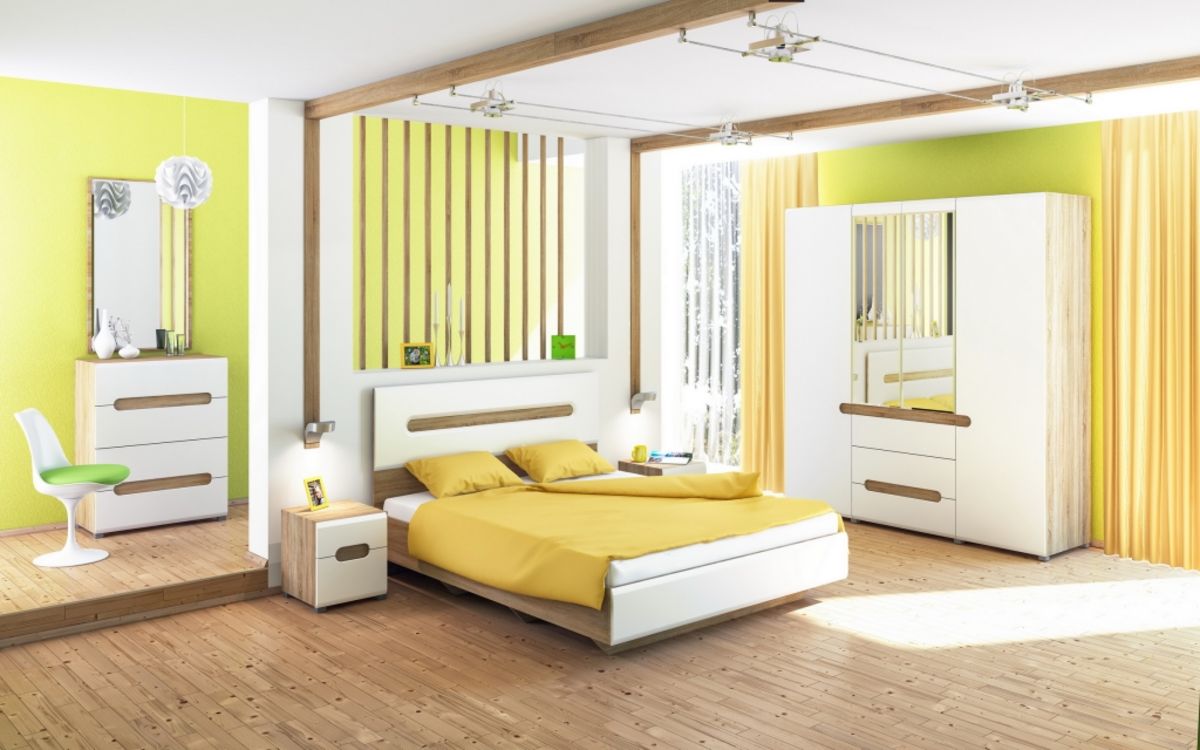 Современная модульная мебель для спальной комнаты. Материал: ЛДСП.