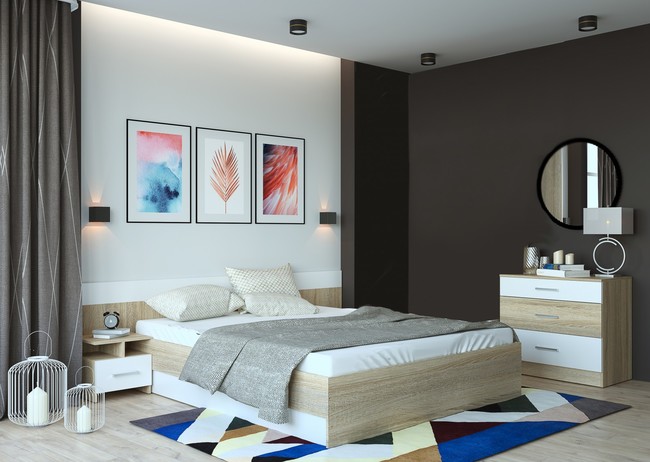 Коллекция модульной мебели для спальной комнаты. Материал: ЛДСП.