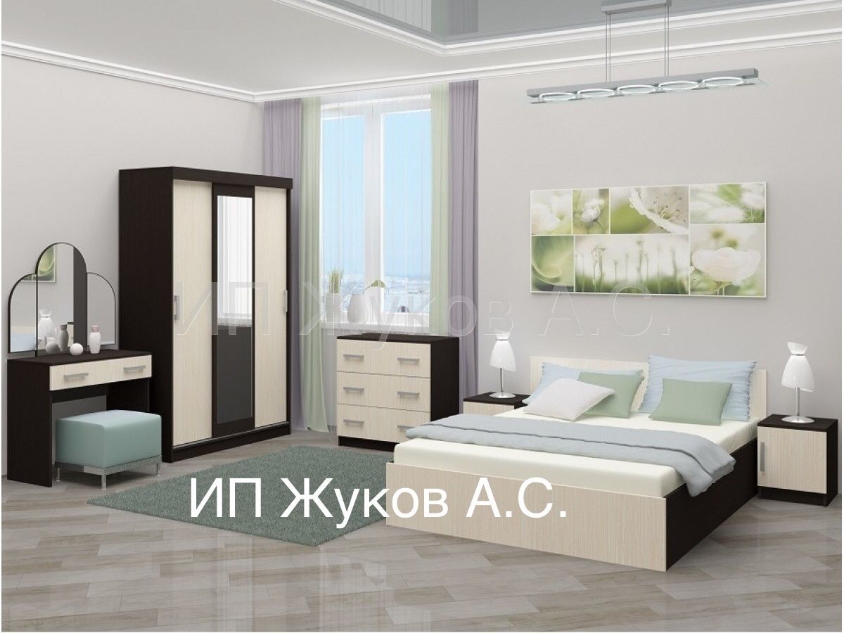 Комплектация: кровать двуспальная, комод. Материал: ЛДСП, МДФ.