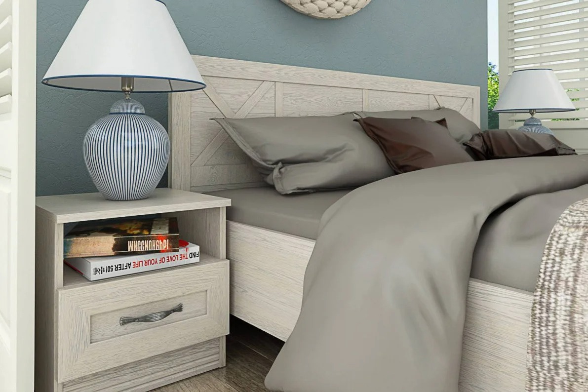 Модульная коллекция мебели для обустройства спальной комнаты. Материал: ЛДСП, МДФ покрытый плёнкой.