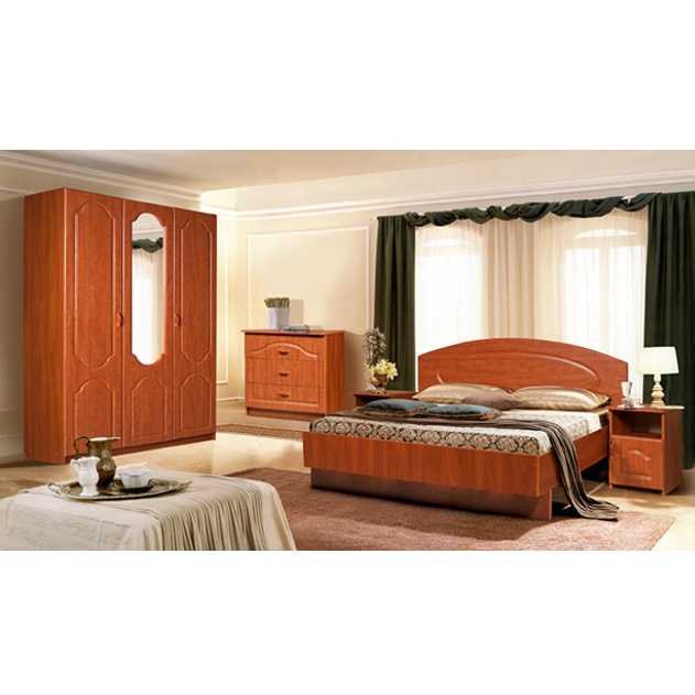 Полный комплект: кровать, прикроватные тумбы, шкаф, комод.