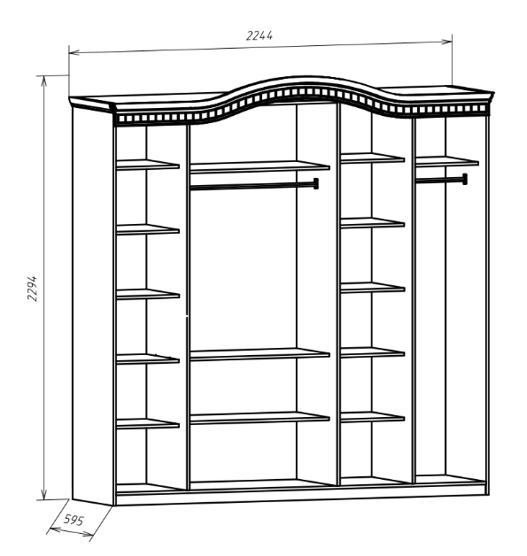 Шкаф для одежды 5-х створчатый: H2294 х B2244 х T592 мм.