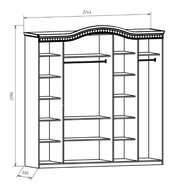 Шкаф для одежды 5-х створчатый: H2294 х B2244 х T592 мм.
