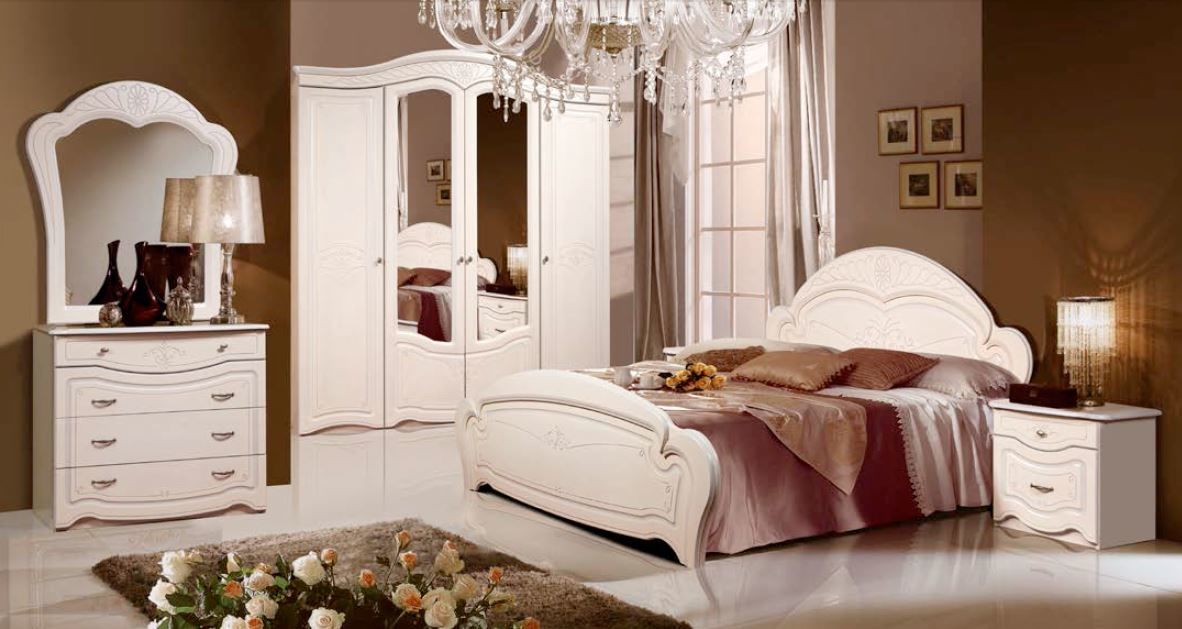 Спальня «Эльмира» (белый/белая кожа патина) Олмеко