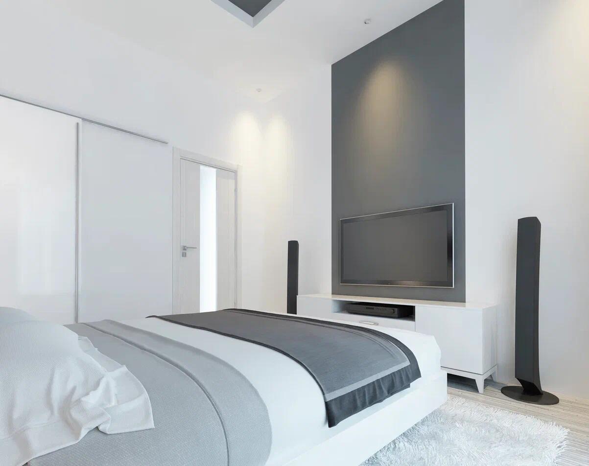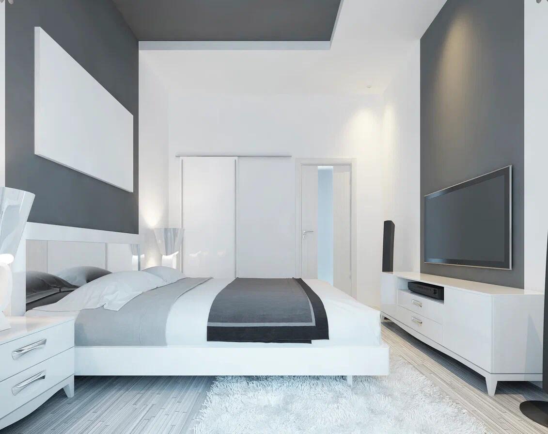 В комплекте кровать, встроенный шкаф, ТВ-тумба, прикроватные тумбы.