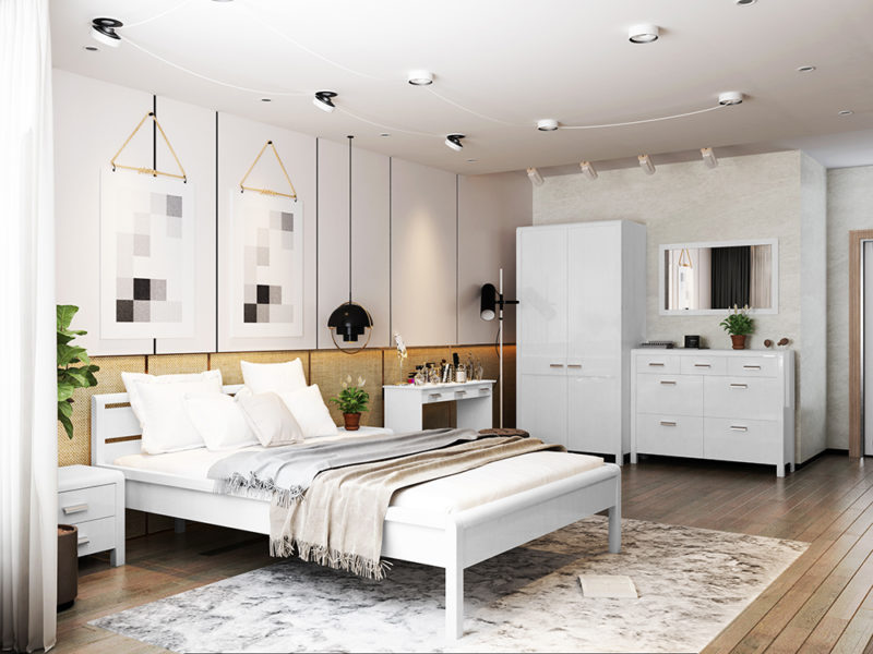 Белый спальный гарнитур с глянцем. Широкий модульный ряд.