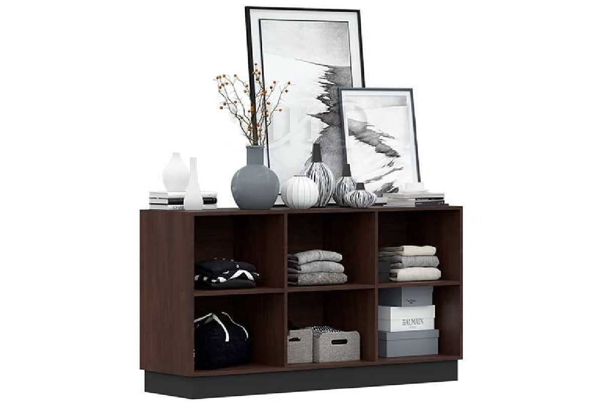 Модульная коллекция мебели в цвете дуба со стильным черным обрамлением. Материал: ЛДСП.