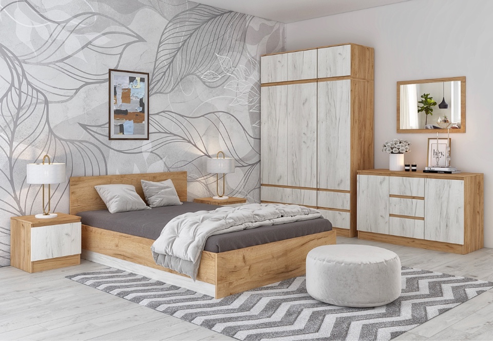 Модульная коллекция мебели для спальной комнаты. Цвет: крафт дуб золотой/белый.