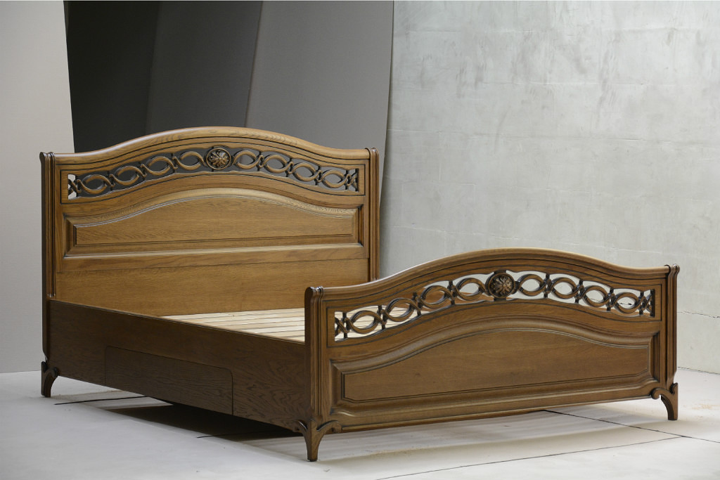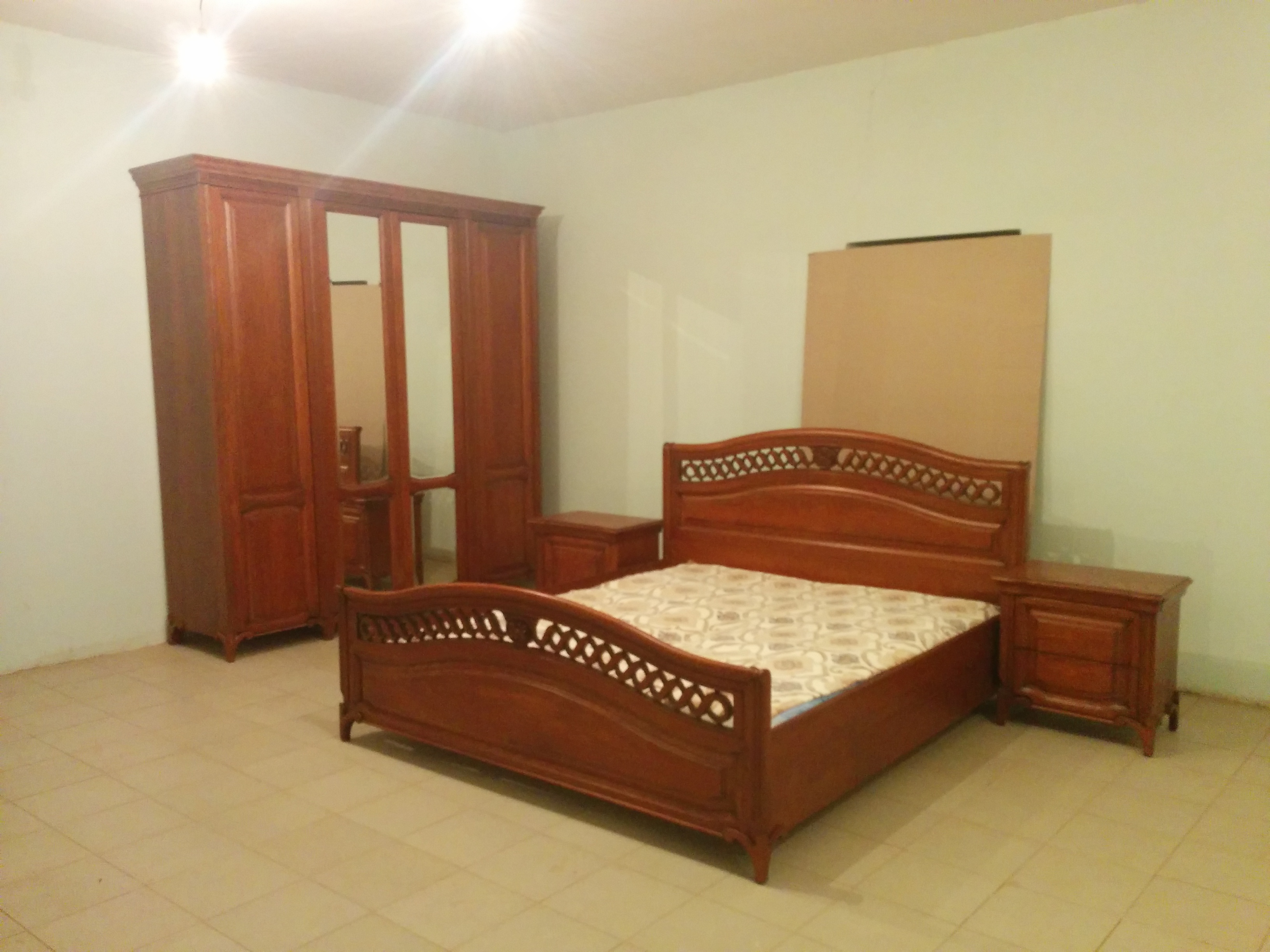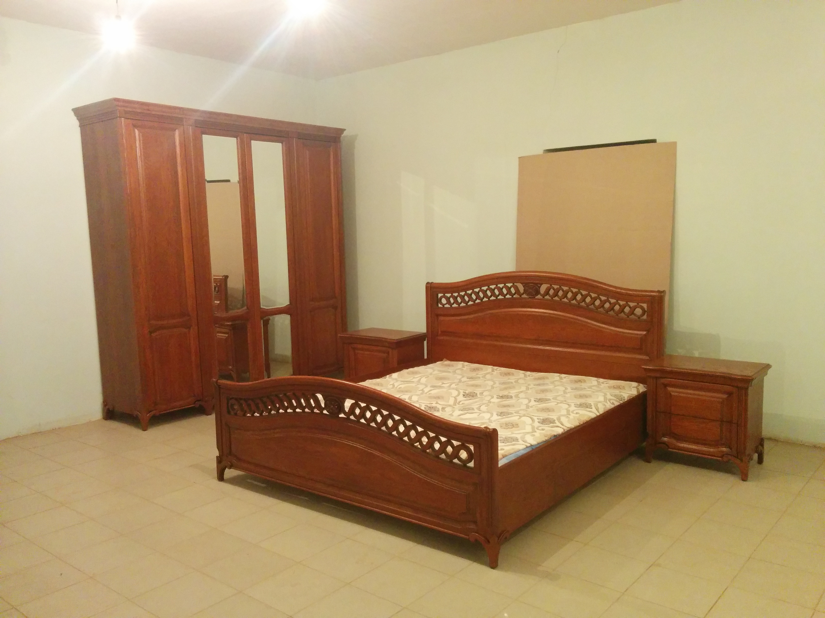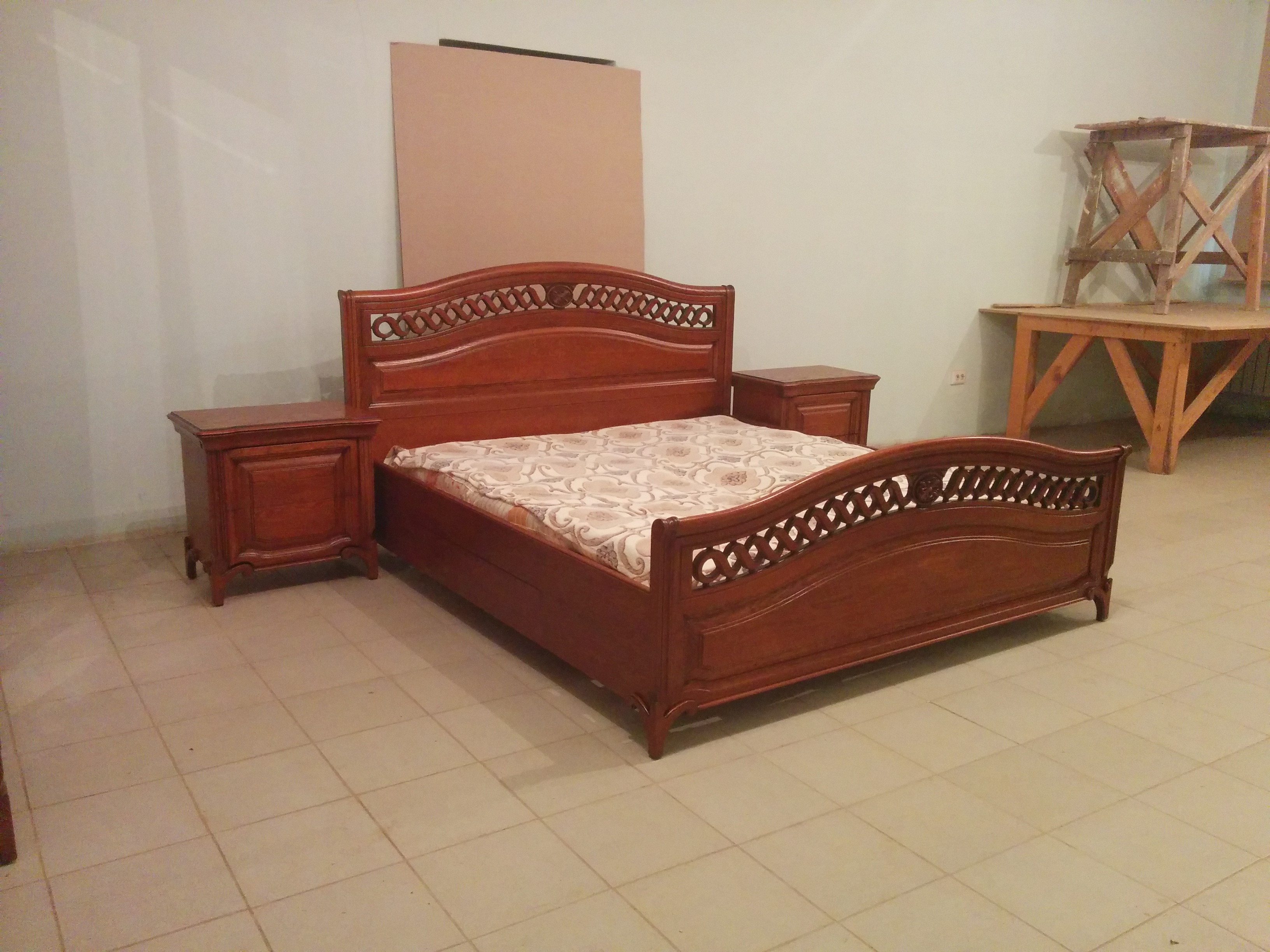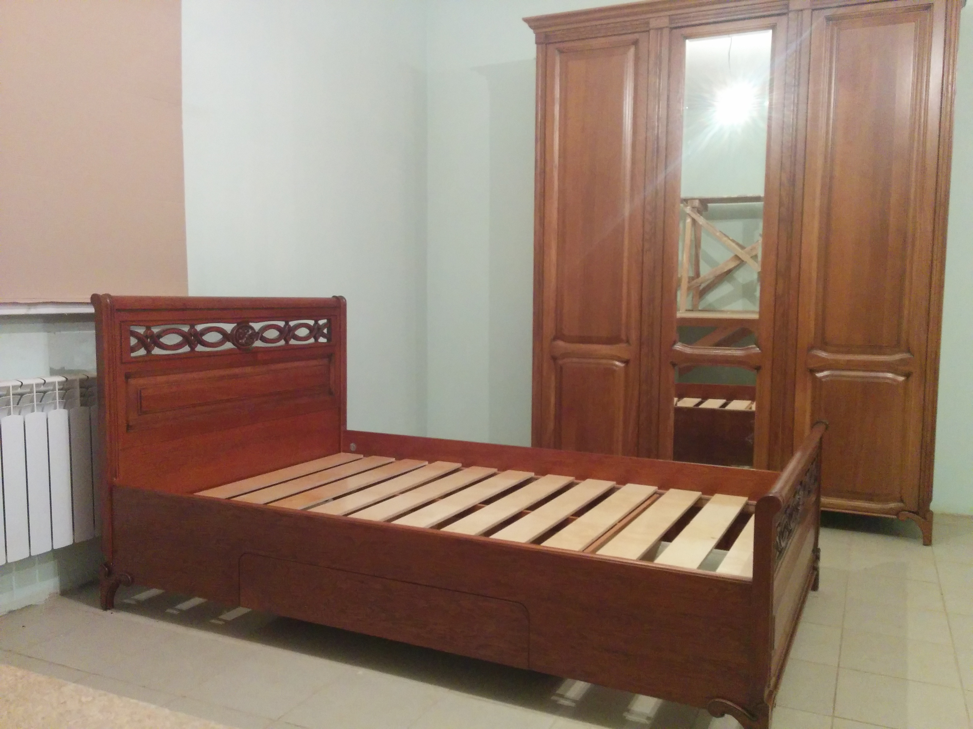 Полный комплект: кровать, прикроватные тумбы, шкаф, комод.