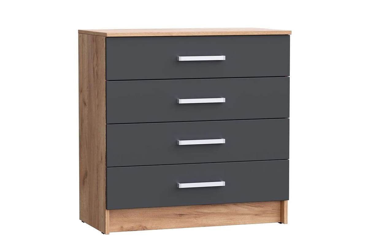 В наборе: кровать, шкаф для одежды, тумба 2 шт., комод.