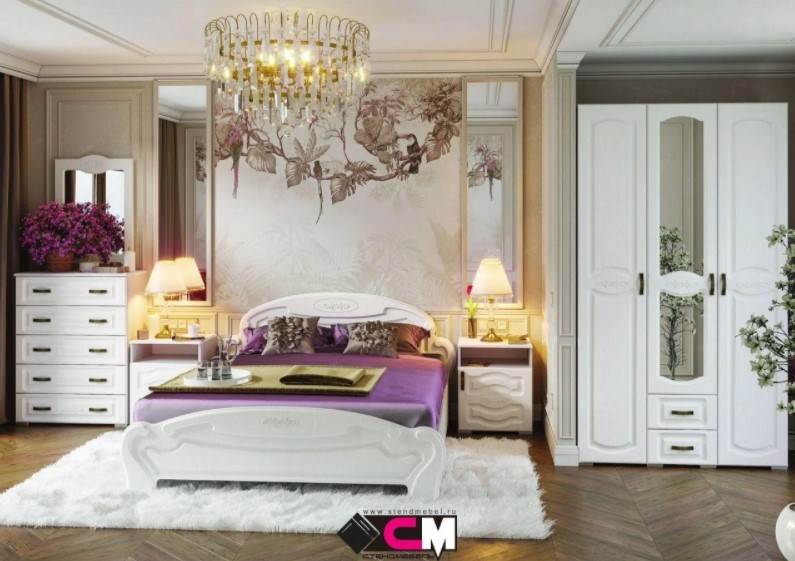 Белый спальный гарнитур с глянцем. Широкий модульный ряд.