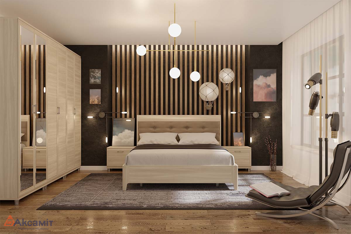 Модульная мебель для спальни в стильном и гармоничном дизайне. Материал: МДФ, ЛДСП.