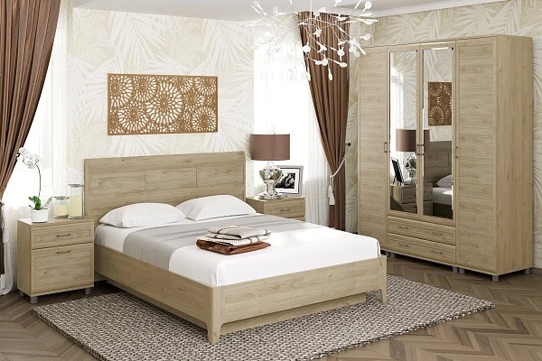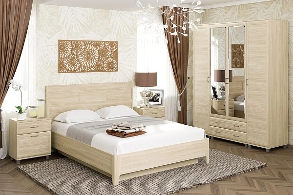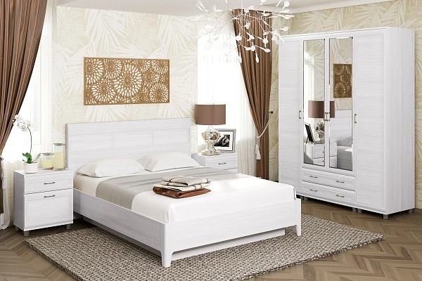 Уютная и лаконичная коллекция для спальни, располагающая к отдыху. Материал: МДФ, ЛДСП.