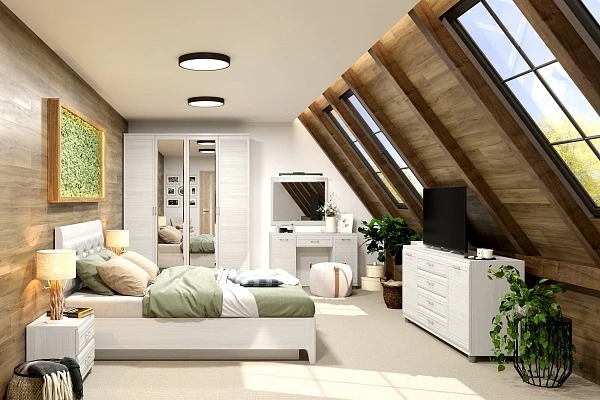Белоснежный модульный гарнитур для обустройства спальни. Материал: МДФ, ЛДСП.