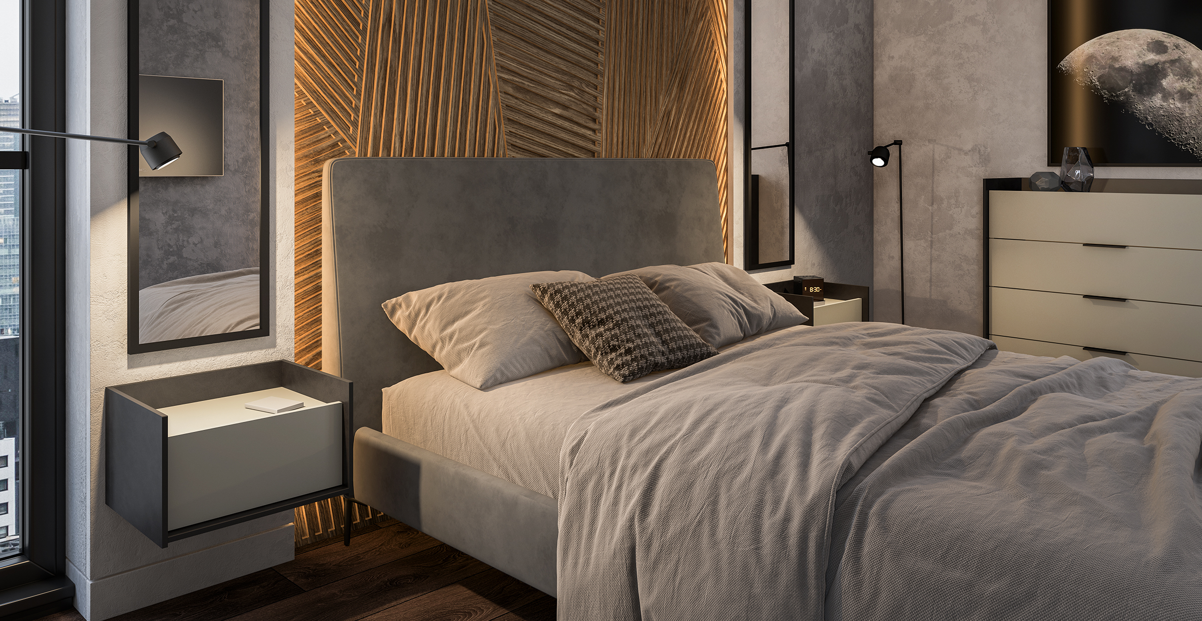 Спальный гарнитур «Аванта» Бетон темный Рикко