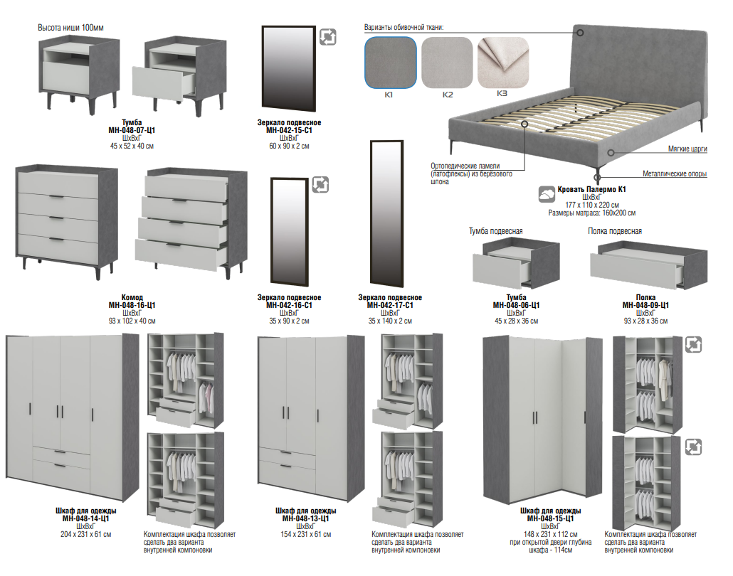 код 151731Коллекция модульной мебели для спальной комнаты. Материал: ЛДСП.