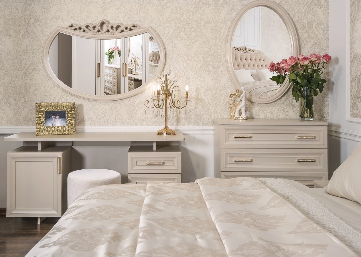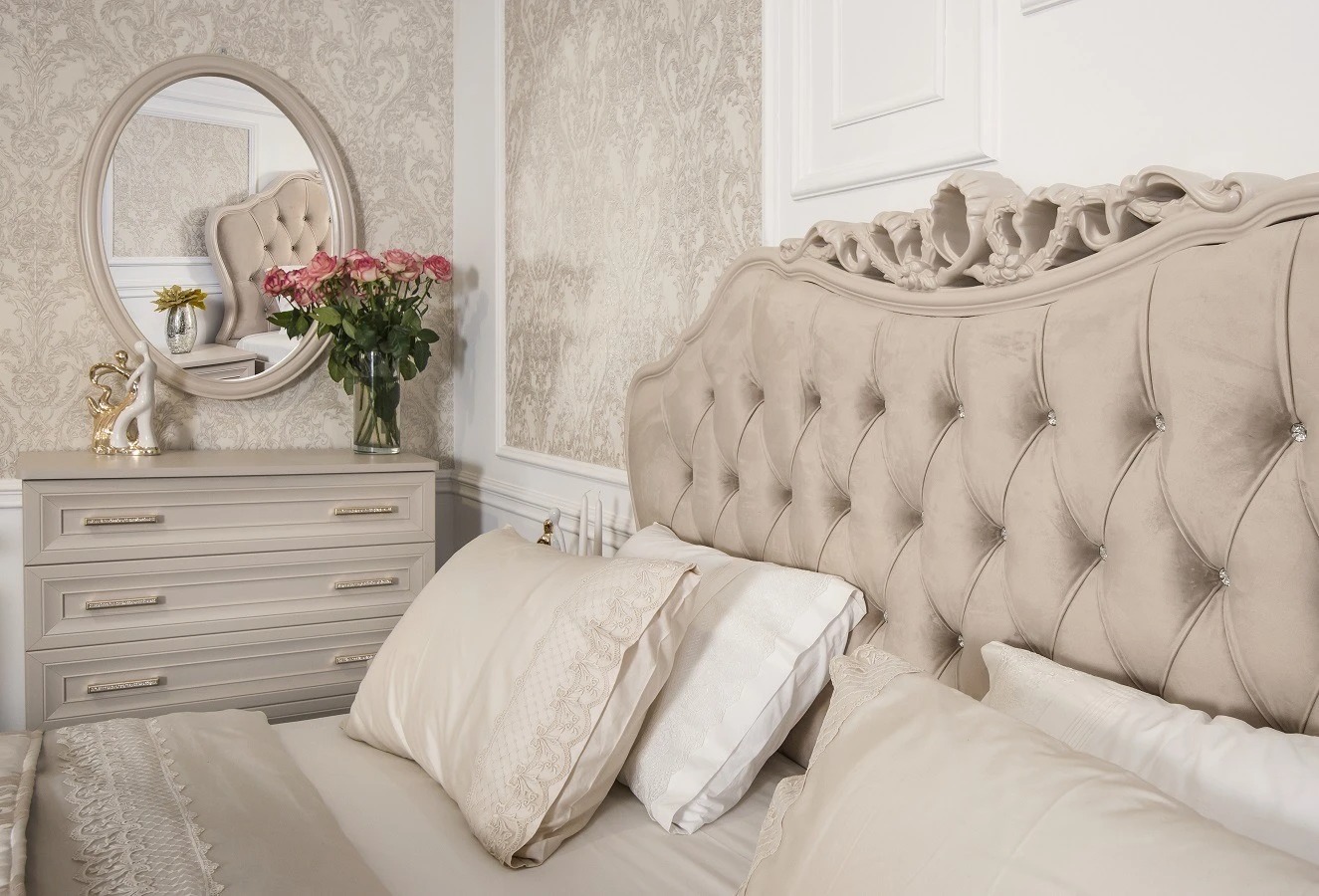 Дополнительные товары: Двухспальная кровать «Мокко» 160 / Зеркало ППУ «Мокко» беж / Туалетный стол «Мокко» / Тумба «Мокко» / Шкаф «Мокко» 3 ств. беж / Комод «Мокко»