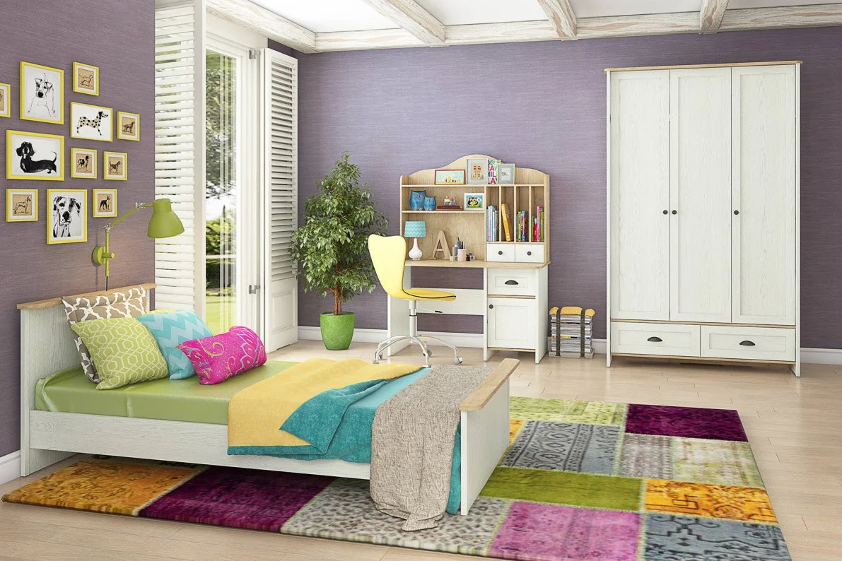 Состав комплекта: комод, шкаф, двуспальная кровать, тумба (2 шт).