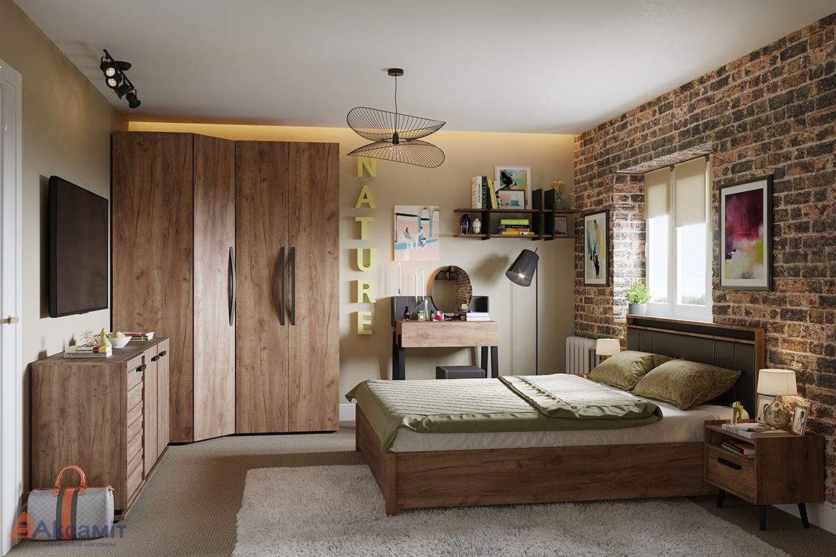 Комплект мебели для спальни линейки Онтарио, изготовленный из ЛДСП.