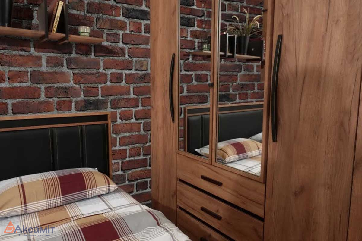 Коллекция выполнена с использованием самых современных и высококачественных материалов и фурнитуры. Дуб табачный Craft-Черный - декор который стремительно ворвался в сферу мебельного дизайна и домашних интерьеров, и уже завоевал сердца множества преданных покупателей. Ведь это спокойный и расслабляющий древесный декор, помогающий создать атмосферу настоящего уюта и комфорта в комнате. Также приятным бонусом является и использование чёрного элемента из экокожи, который придаёт кровати притягательной очарования, превращая её в главный визуальный элемент всего интерьера.