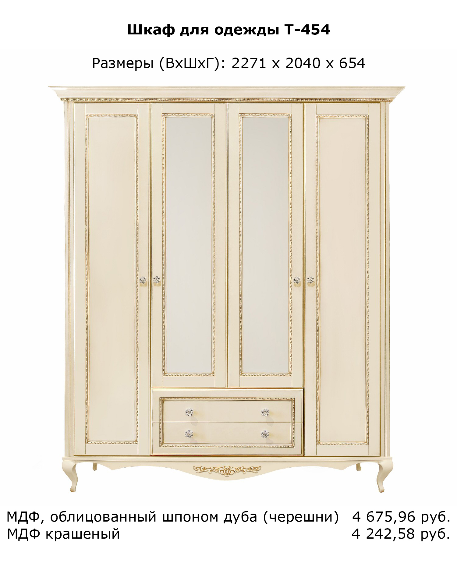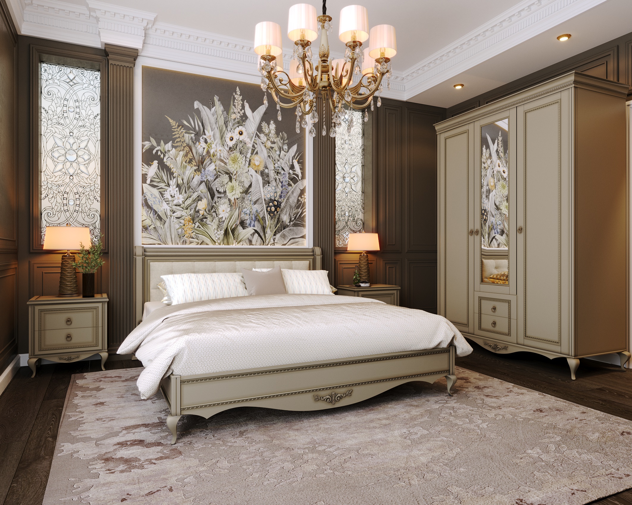 Классическая коллекция мебели для обустройства спальной комнаты. Материал: МДФ покрытый плёнкой, ЛДСП.