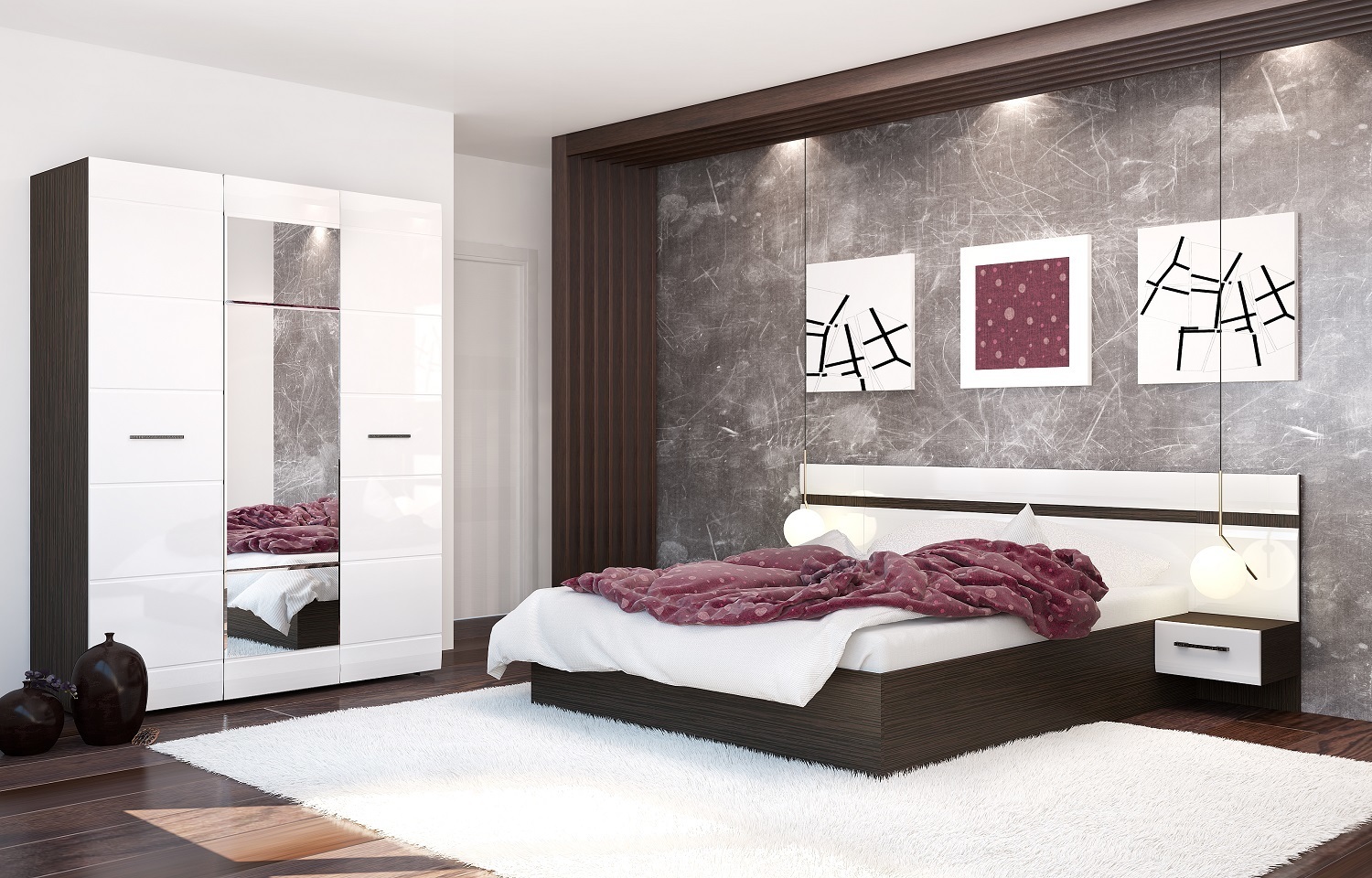 Современная модульная мебель для спальной комнаты. Материал: ЛДСП.