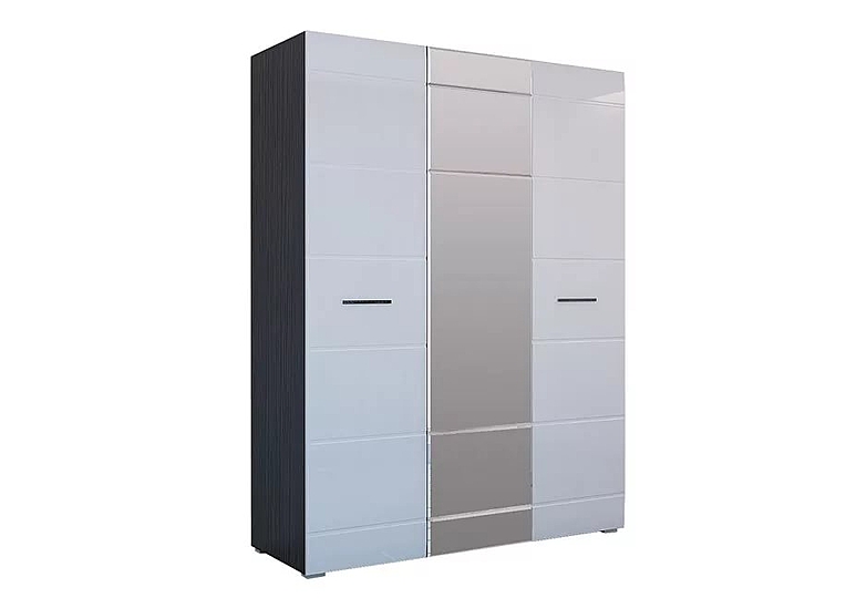 код 90694Навесные тумбы встроены в изголовье кровати. Шкаф с зеркальными вставками.
