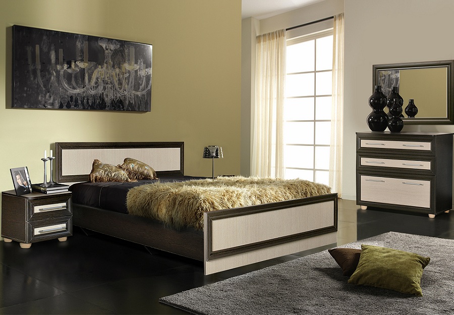 Спальня «Ника» - рамочный фасад, цвет – комбинированный - венге/ дуб беловежский. Аккуратное и лаконичное исполнение спального гарнитура, большая двуспальная кровать, вместительные шкаф, комод создадут уют и неизменно украсят вашу спальную комнату по доступной цене.