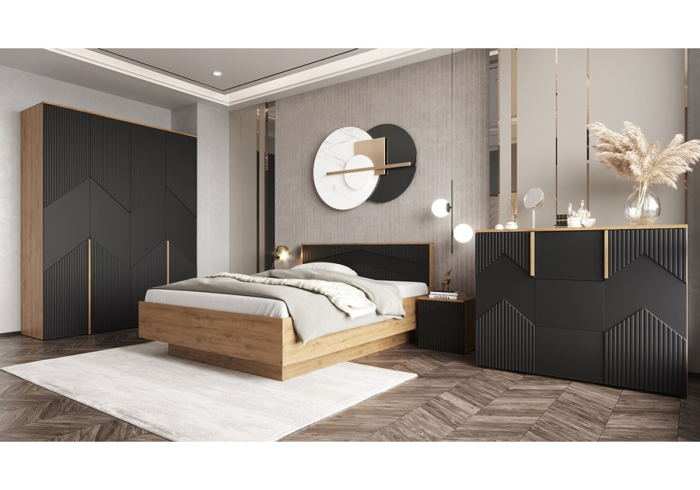 Спальня «Оливия» КМК Дуб Наварра /Шагрень черная