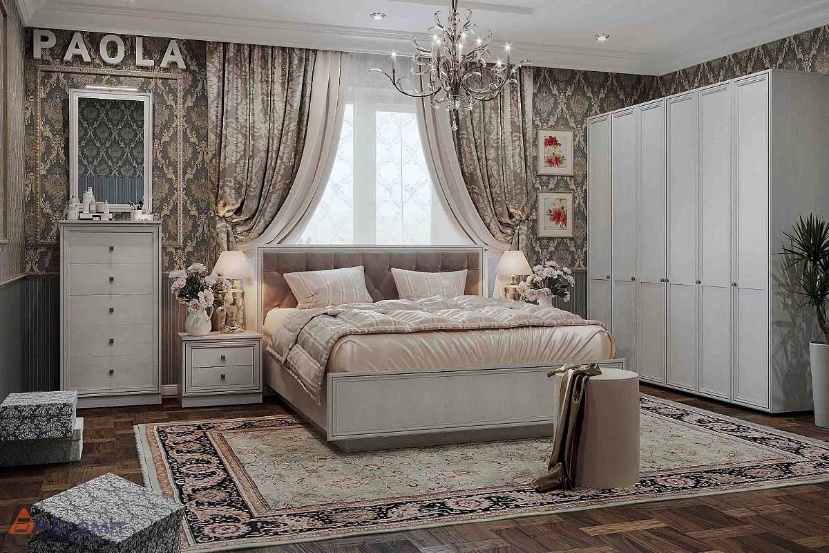 Прекрасная светлая спальня Paola выполненная в классическом стиле, прекрасно подойдёт тем, кто любит практичный и спокойный дизайн.