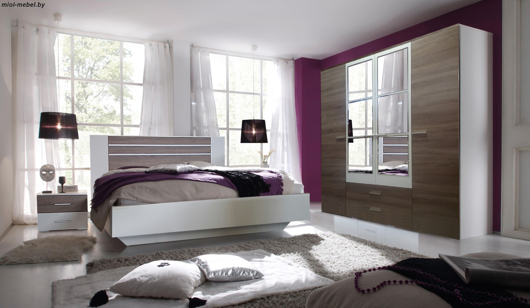 Комплектация: кровать двуспальная, комод, шкаф-купе 3ств. Материал: ЛДСП, МДФ.