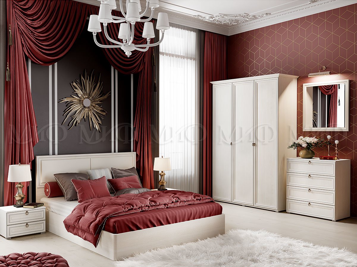 Состав комплекта: комод, шкаф, двуспальная кровать, тумба (2 шт).