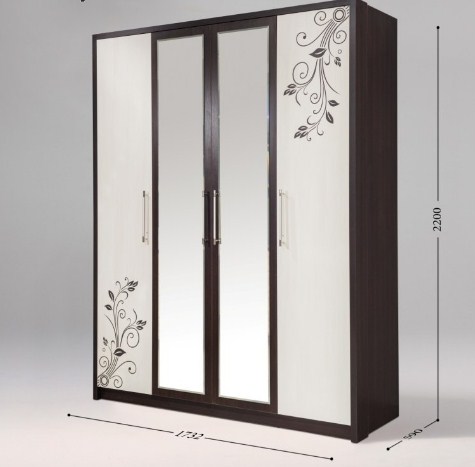 - шкаф 4-х створчатый зеркало с фацетом, УФА печать. Ш1732*В2200*Г600
