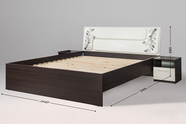 - Кровать двуспальная (ШхВхГ): 2080х880х1640 мм.