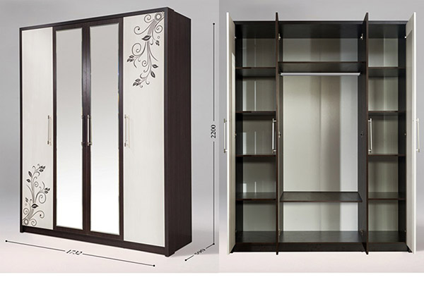 - Шкаф платяной (ШхВхГ): 1732х2200х600 мм.