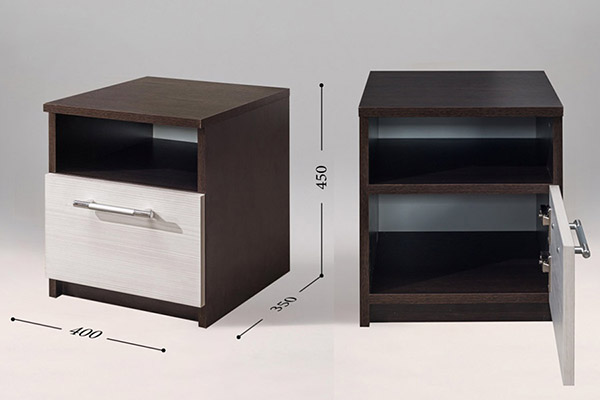 - Тумба прикроватная (ШхВхГ): 400х450х350 мм.