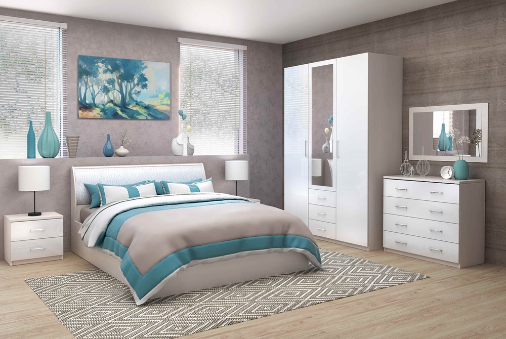Комплект современной мебели для обустройства спальной комнаты.