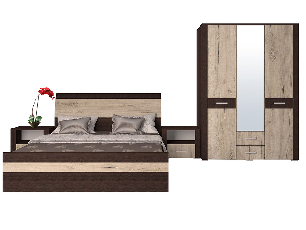 В комплекте: кровать двуспальная, шкаф распашной 4ств., тумба подвесная 2 шт.