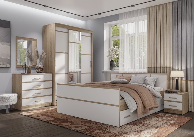 Комплектация спальни Сакура - Дуб сонома/Белый (ШхВхГ):