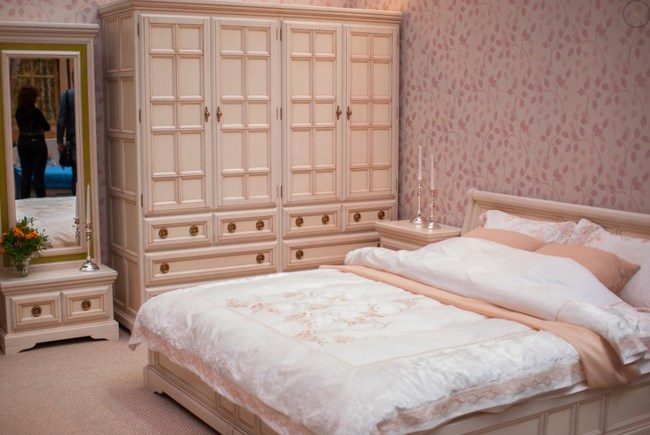 Современный гарнитур для спальни, изготовленный из ламинированной ДСП.