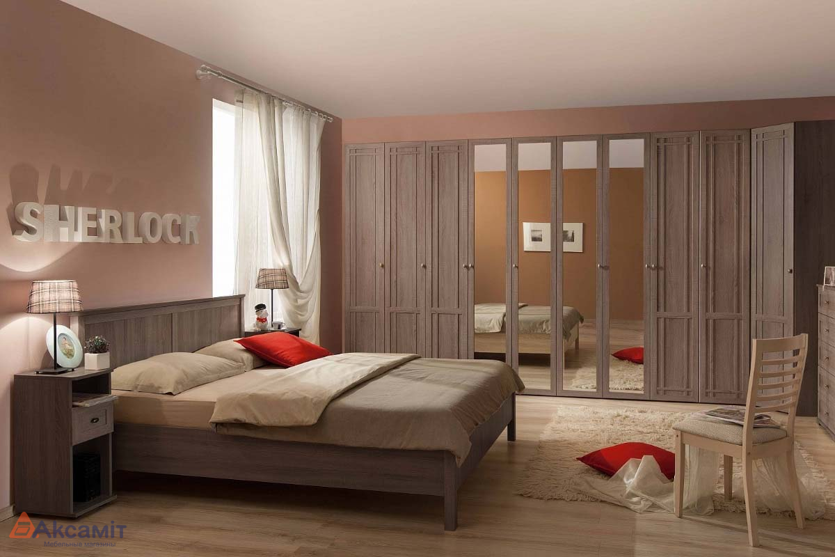 В наборе: кровать, тумба 1шт., шкаф 4дв., комод.
