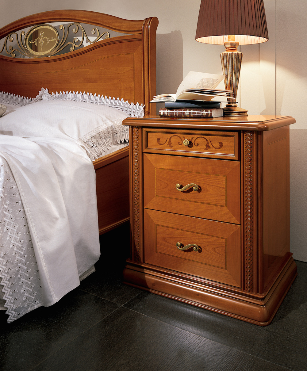 Состав комплекта: комод, шкаф, двуспальная кровать, тумба (2 шт).