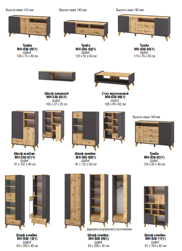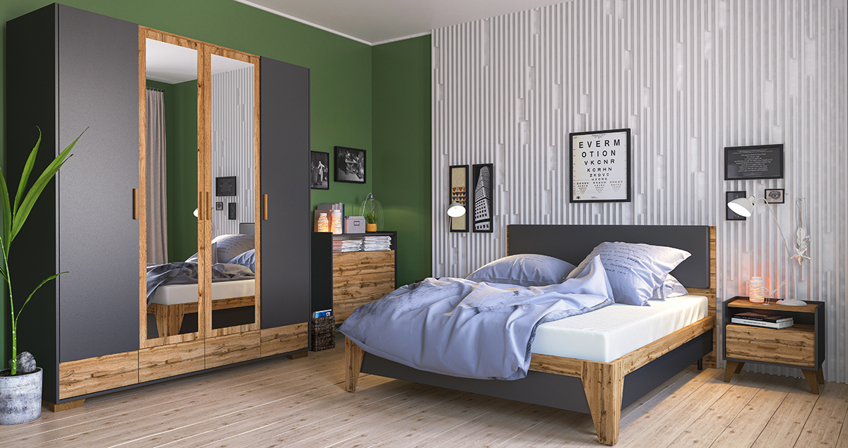 Спальня «Сканди» комплект 2, графит/дуб вотан (Мебель-Неман)